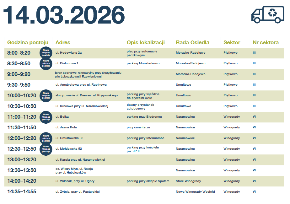 Źródło: Harmonogram postoju Gratowozu